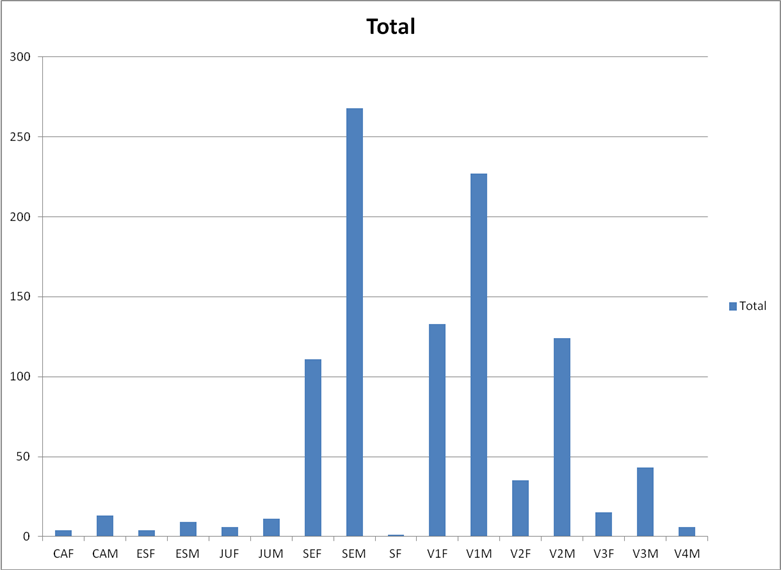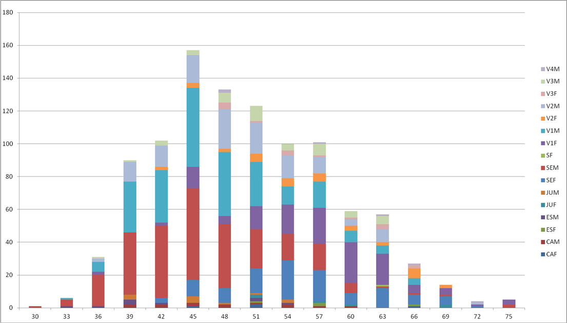 Temps (en minutes) par tranche de 3 min (et par catégorie):