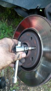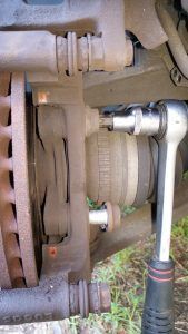 Etape n°2 : Dévisser l’étrier à l’aide d’une clef de 17 et de 13.