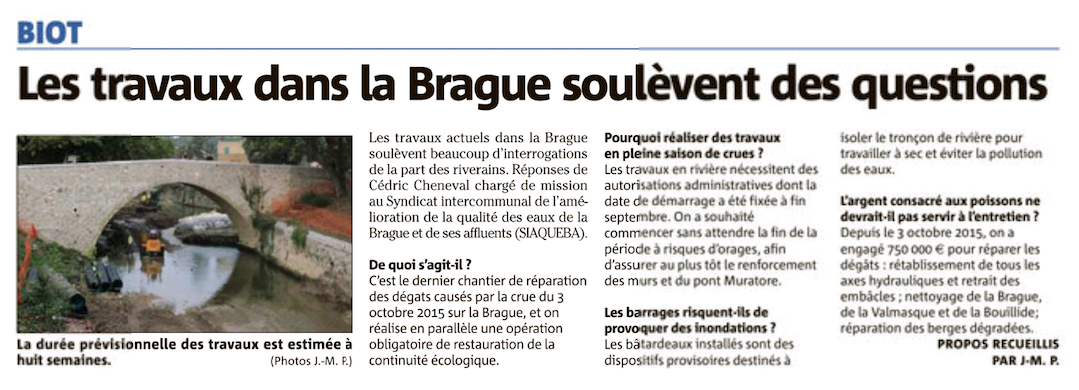Nice-Matin : Les travaux dans la Brague .
