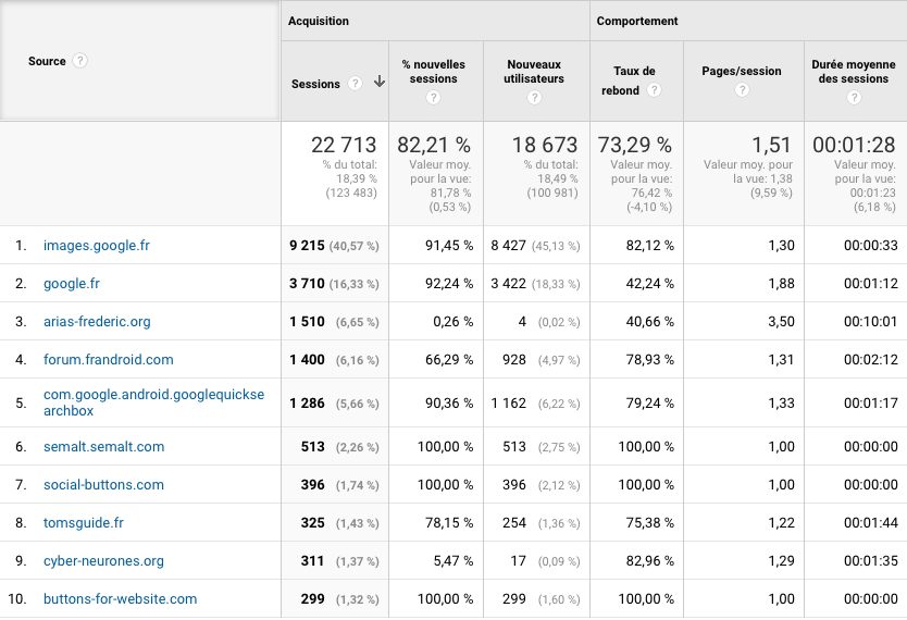 Acquisition : Tout traffic : Site référant (Je m’auto référence ;) ).