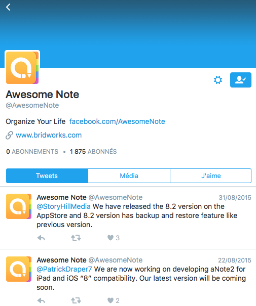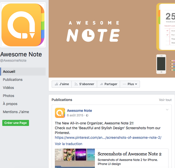 - Facebook : 11 oct. 2012 : https://www.facebook.com/AwesomeNote/