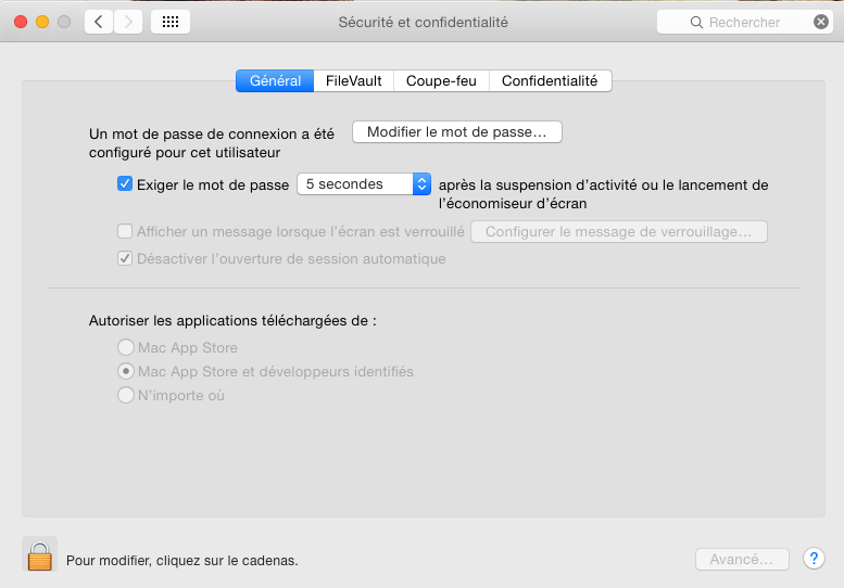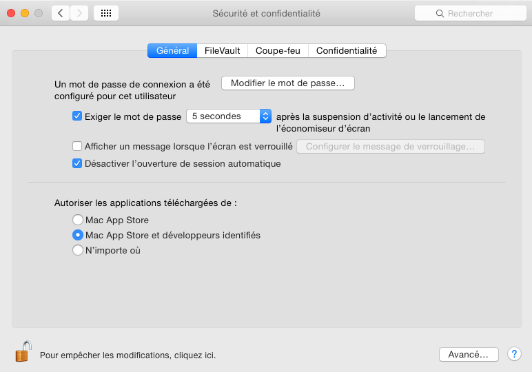 Ensuite on peut refaire l’installation, mais je conseille vivement après le premier lancement de remettre comme c’était avant : “Mac App Store et développeurs identifiés”.