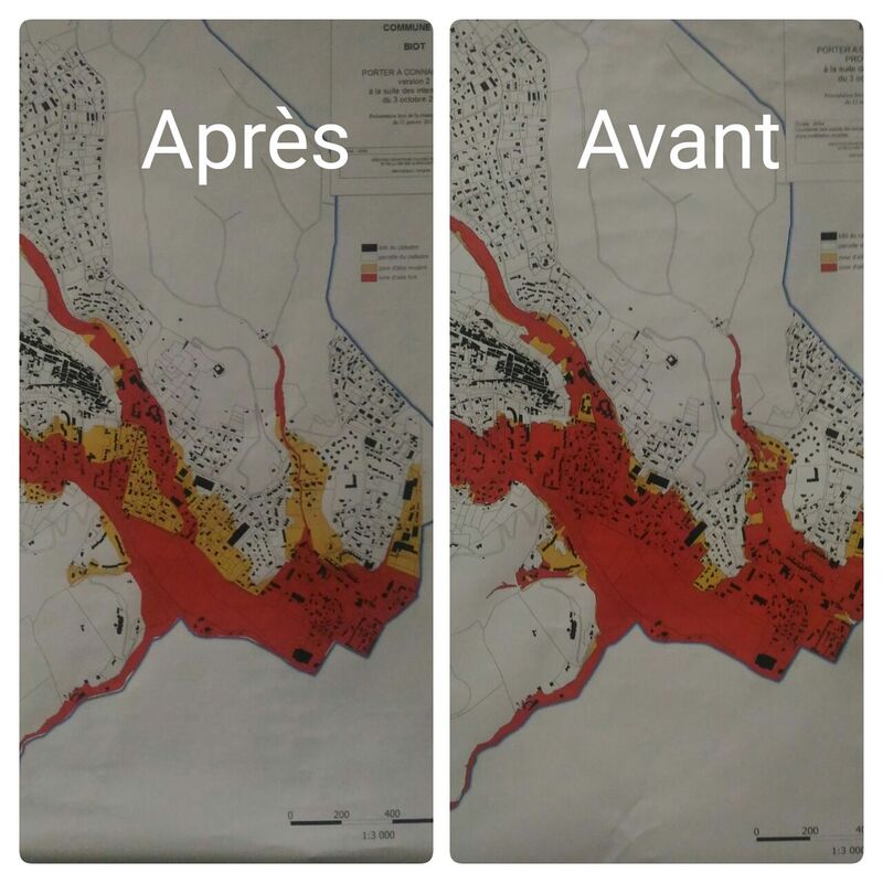 La nouvelle carte qui est sur le site de la mairie depuis le 01/02/2017: http://www.biot.fr/nouvelle-cartographie-zones-inondables/