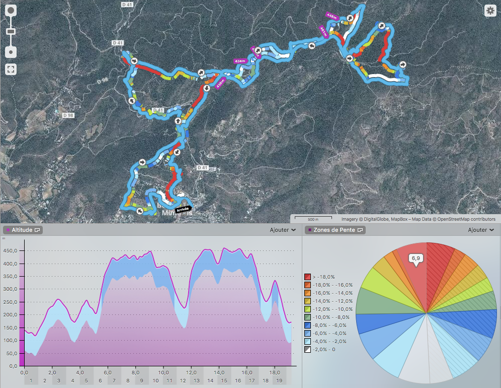 On a 6,9% de pente a plus de 18% ( env. 1,4 km ).