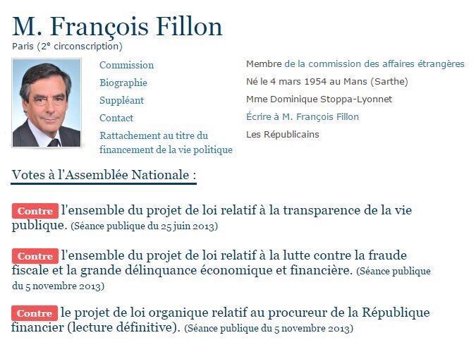 - On s’aperçoit que quand il venait c’était pour voter contre des lois contre la transparence :