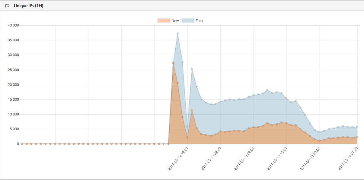 Maintenant il va falloir attendre lundi matin pour voir l’ampleur exacte des dégâts : https://intel.malwaretech.com/botnet/wcrypt/?t=1h&bid=all