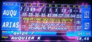Bonne session avec un record de 157 points avec la boule 14 (lourde). Je pense que cela va être limite pour la finale, en général il faut faire 160 points (ou plus).