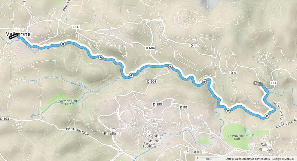 Le parcours : (L’arrivé se fait sur la place de Valbonne, pour un rafraichissement bien mérité)