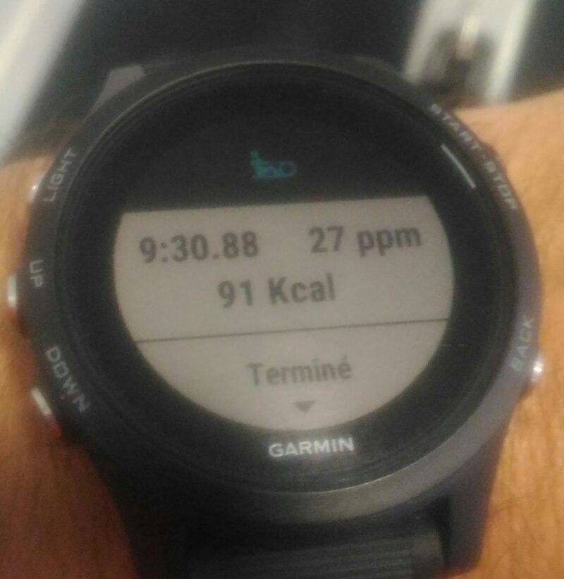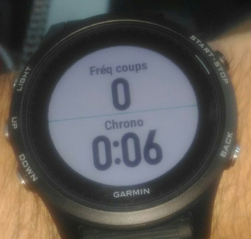 On peut se féliciter du fait de voir le rameur d’intérieur dans la GARMIN Forerunner 935. A l’affichage on a : Fréquence de coups & Chronomètre.
