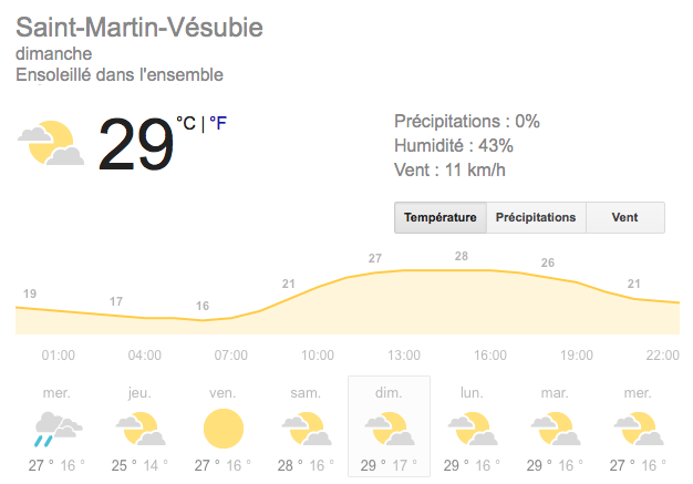 La météo qui est annoncé pour l’instant : Ensoleillé dans l’ensemble .