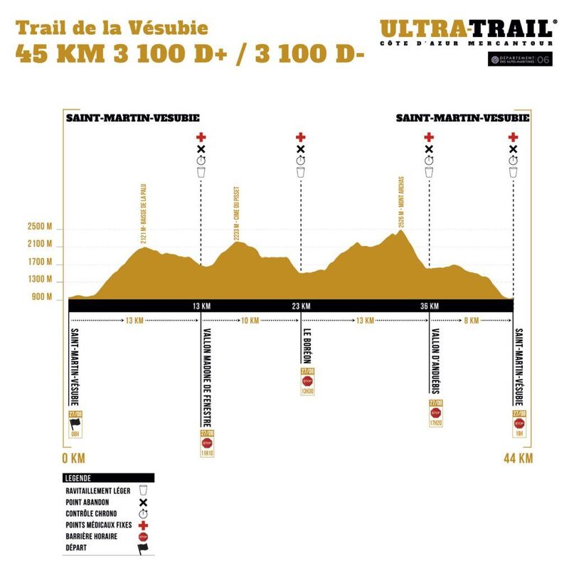 Le parcours est le suivant : ( voir le roadbook : http://www.ultratrail06.com/2017/dl/UTCAM2017_roadbook-coureurs-44km.pdf )