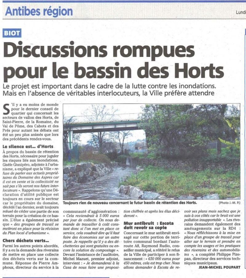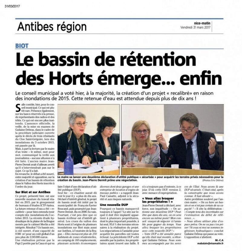 Article de Nice-Matin (31/03/2017) : http://www.nicematin.com/politique/le-bassin-de-retention-des-horts-emerge-enfin-125987