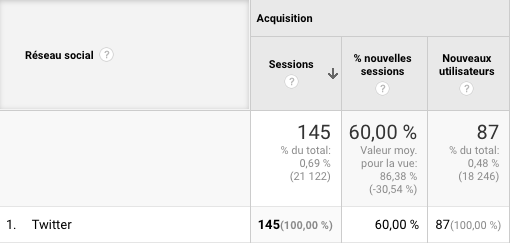 Et si je regarde avec Google Analytics le nombre de personne qui sont rediriger depuis Twitters sur les 4 derniers mois :