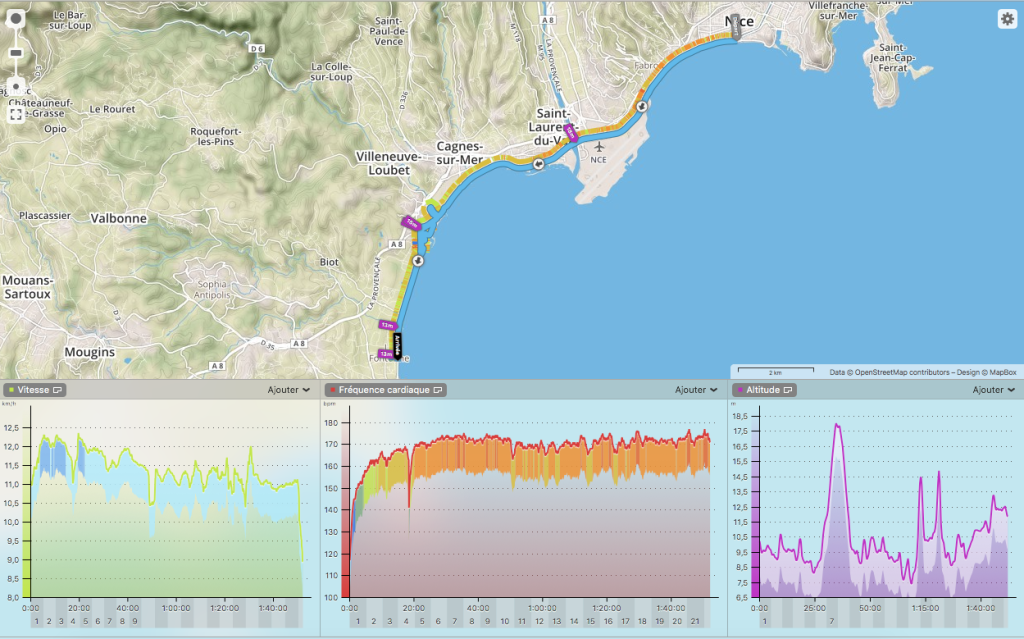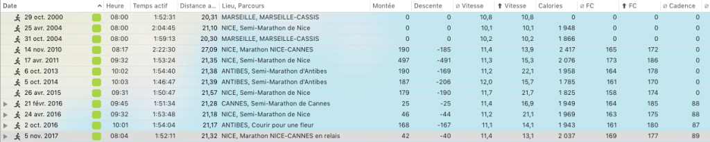 J’ai fait 1h52m11 ce qui n’est pas trop mal, l’année passée en 2016 j’avais fait 1h54m04 (sur Courir pour une fleur) et 1h53m48 (sur le semi de Nice).