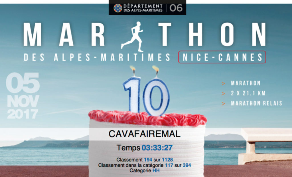 Le lien pour voir les résultats : http://www.marathon06.com/2017/resultats.htm#