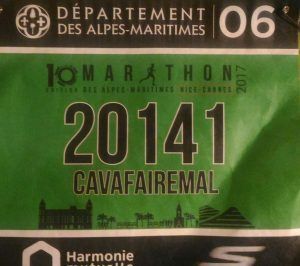 J’ai fait la première partie du relais, réveil à 5h40 pour prendre le train à 6h30 pour Nice (comme toujours le train était bondé). J’ai du arriver vers 7h00 à Nice, ensuite il a fallu rejoindre la ligne de départ … La seule chose nouvelle c’est la palpation pour entrer sur la ligne de départ. Le départ a eu lieu vers 8h00, pour ma part j’ai franchi la ligne de départ à 8h04.