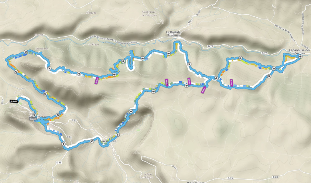 Les ravitaillements étaient d’une très grande qualités et convivialités : café chaud, chocolat chaud, soupe, gel, ….. tartine de Roquefort . Champion ! Du jamais vu alors que j’ai du faire plus de 70 courses.
