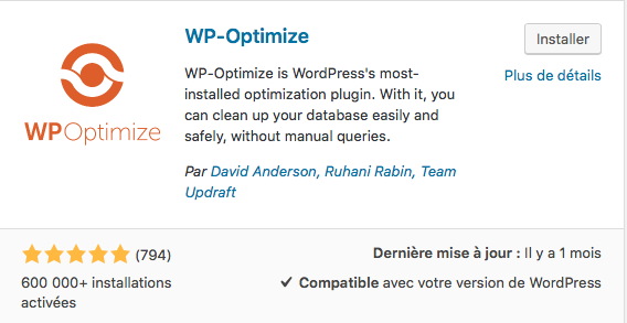 Je vais donc prendre le plus installé à savoir wp-optimize :
