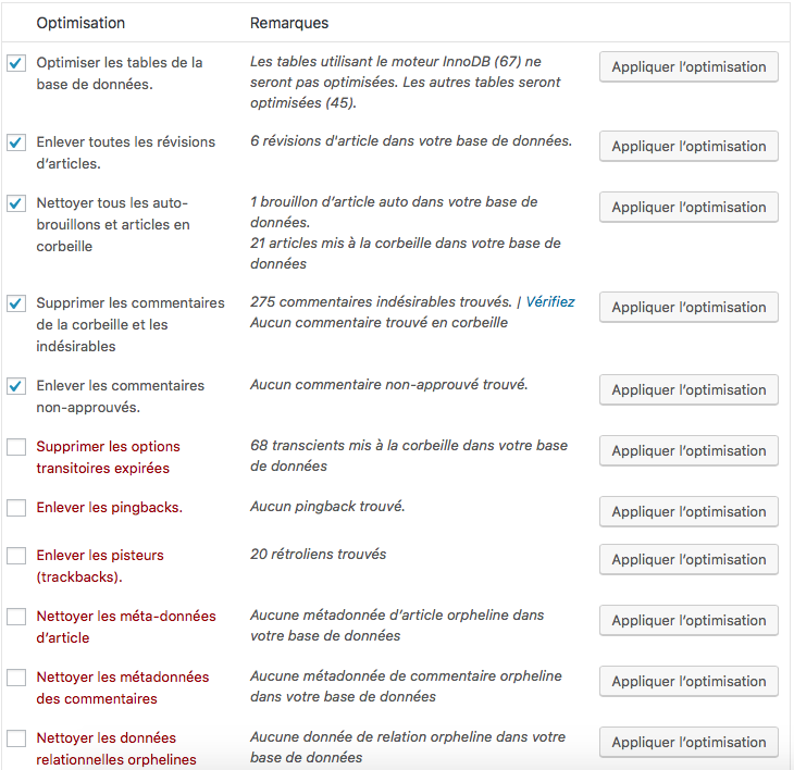 - https://fr.wordpress.org/plugins/wp-optimize/ : WP Optimize