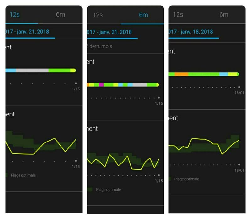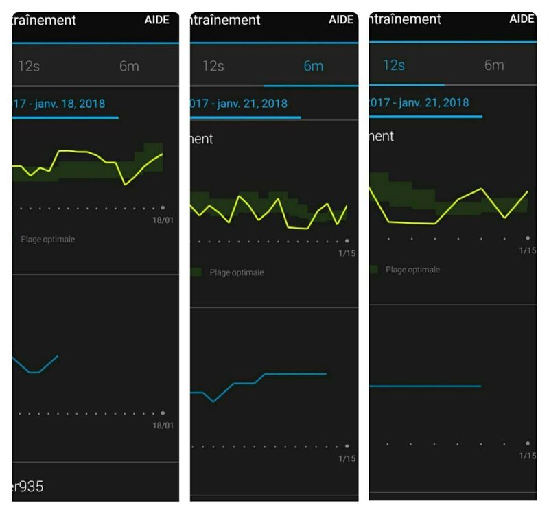 Suivant que l’on prend 4s (4 semaines), 12s (12 semaines), 6m (6 mois) , on peut se trouver en dessus ou au dessous de la courbe. Comme si le “Statut d’entrainement” était fonction de la période avec laquelle on regarde ?! J’ai du mal à comprendre … Voici un exemple des mêmes données avec différente période …