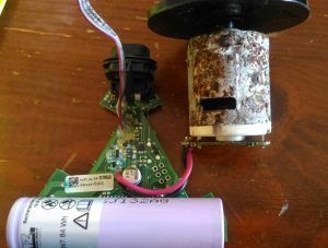 La batterie est une 3,65 V/2150 mA la référence est JH1615. Vous vous demandez si j’ai bien fait la photo du moteur ? En voici une autre :