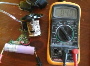 On peut dire que le moteur a été attaqué par la corrosion, alors que l’appareil était stocké au sec. J’ai commencé par un test de la batterie :