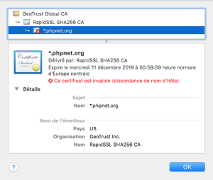 Je vais donc voir s’il y a un changement, je sais que par défaut Safari bloque les sites qui n’ont pas leur propre certificat.