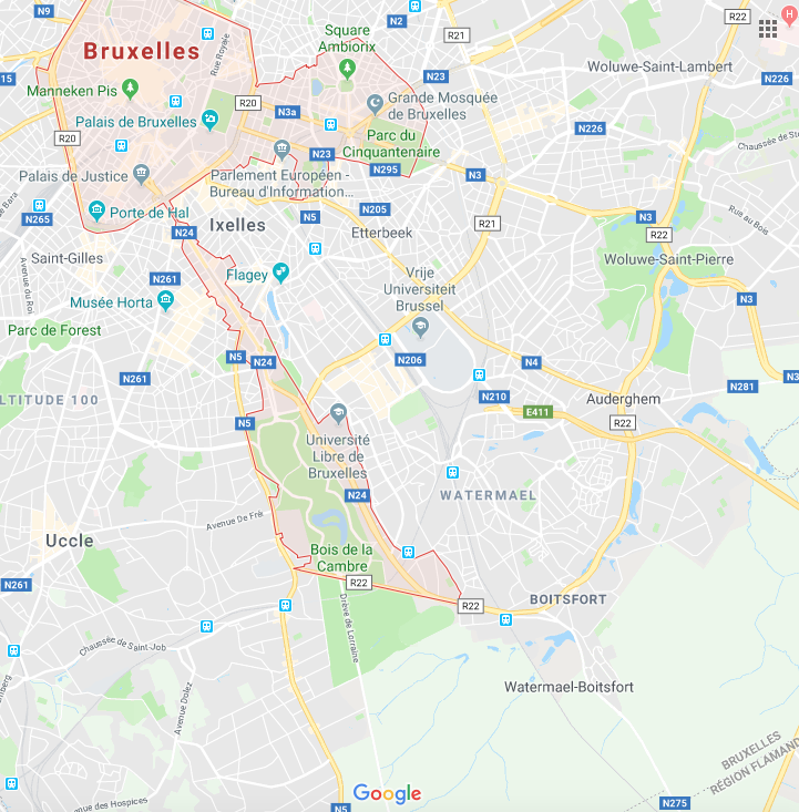 Petit plan de Bruxelles afin de mieux situer le Bois de la Cambre :