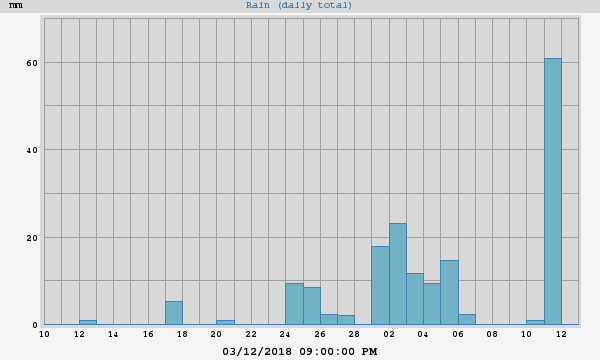 - mon module NETATMO n’a pas supporté le vent : https://www.cyber-neurones.org/2018/01/station-netatmo-pluviometrie-pas-fiable-quand-le-vent-est-fort/ , depuis il indique de fausses valeurs. Il va falloir que je le répare.