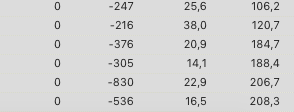J’ai donc fait 85 descentes : 232 km et 10h34min de ski. Sur ses 85 descentes, j’ai eu 6 fois une vitesse maximum fausse : (taux d’erreur : 6/85 = 7% d’erreur sur la vitesse maximum)
