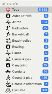 I think that : if by default the software didn’t launch on all (“Tous” in french) activities, but for example “running” (“course à pied” in french). It would be faster. It would be nice to make an option to choose the default category for launching the software. No ?