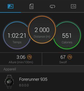 J’avais pas encore fait les tests de natation en piscine dans un bassin de 25m :