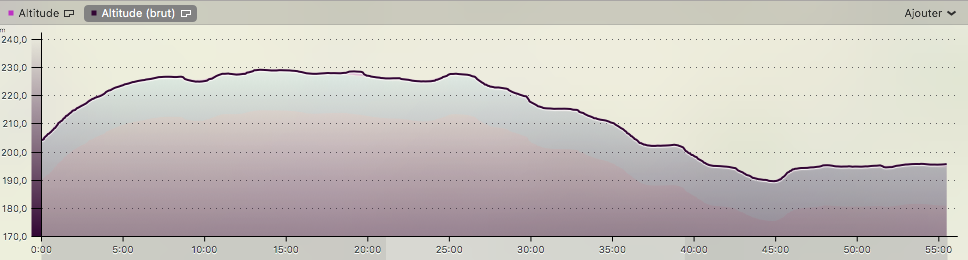 - Temps actif 55:31 min ( compter 1 h , et 2h pour l’aller-retour )