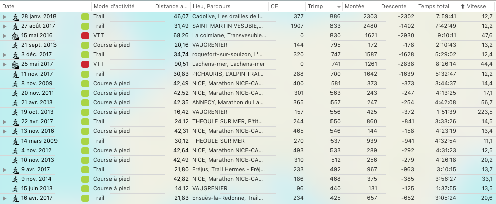Par exemple si je classe mes activités par Trimp, et que je regarde les maximales :