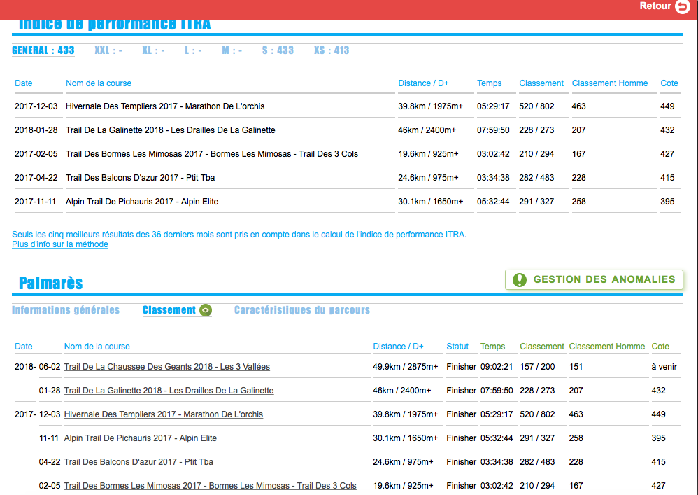 Par contre je n’ai pas de trace de mon Trail de la Vésubie en 2017 en “no-Finisher” ( https://www.cyber-neurones.org/2017/08/trail-de-la-vesubie-version-44-km/ ) . Quel sont les critères pour avoir un “Statut” “no-Finisher” ?