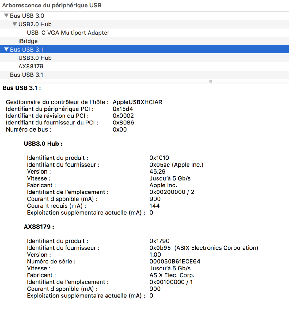 On peut voir que c’est en USB 3.1 : AX88179 :
