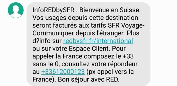Information n°2 : RedBySFR m’informe du prix … quand j’arrive en Suisse.