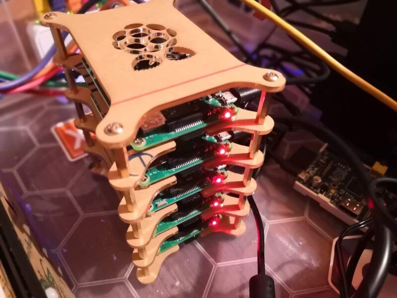 Un rack de 5 Raspberry(s). et Papi Raspberry sur la droite …[/caption]