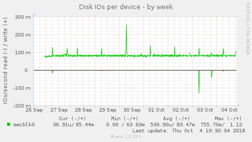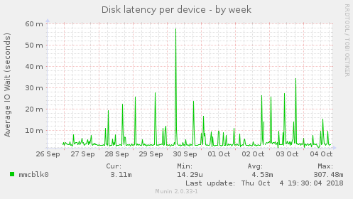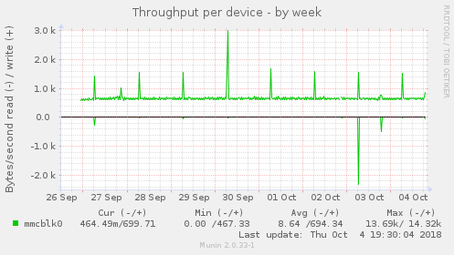 Il va falloir maintenant voir via Munin quel est l’activité supplémentaire que cela provoque sur les écritures/lectures de la carte MicroSD. Les graphiques actuels :