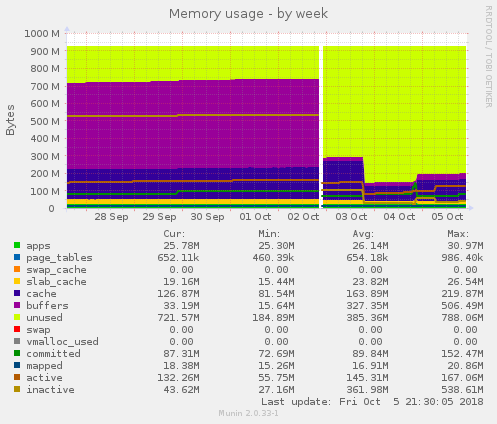 Pour information voici la mémoire avant la mise en place 200 Mo utilisé sur 1000 Mo: