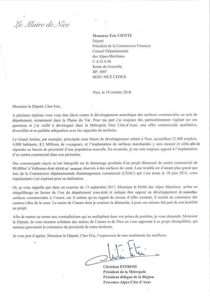 “Le futur centre commercial des Clausonnes construit sur des terrains essentiellement naturels, présenté comme environnemental quand il s’agit d’imperméabilisation des sols (on connaît les conséquences), de saturation routière supplémentaire, de gâchis et banalisation des paysages”, a ironisé David Lisnard sur Twitter.