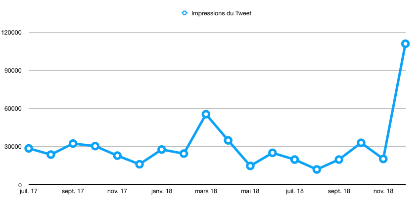 Via Twitter Analytics : https://analytics.twitter.com/ sur mon compte : https://twitter.com/CYBERNEURONES