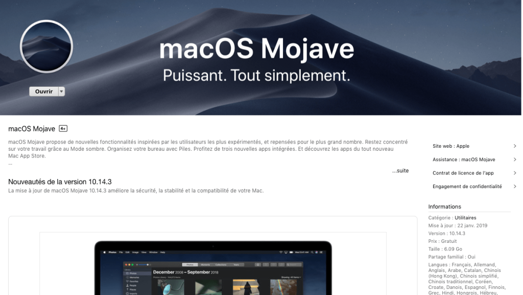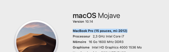 J’ai donc fait la migration vers Mojave de mon MacBook Pro (15 pouces, mi-2012).