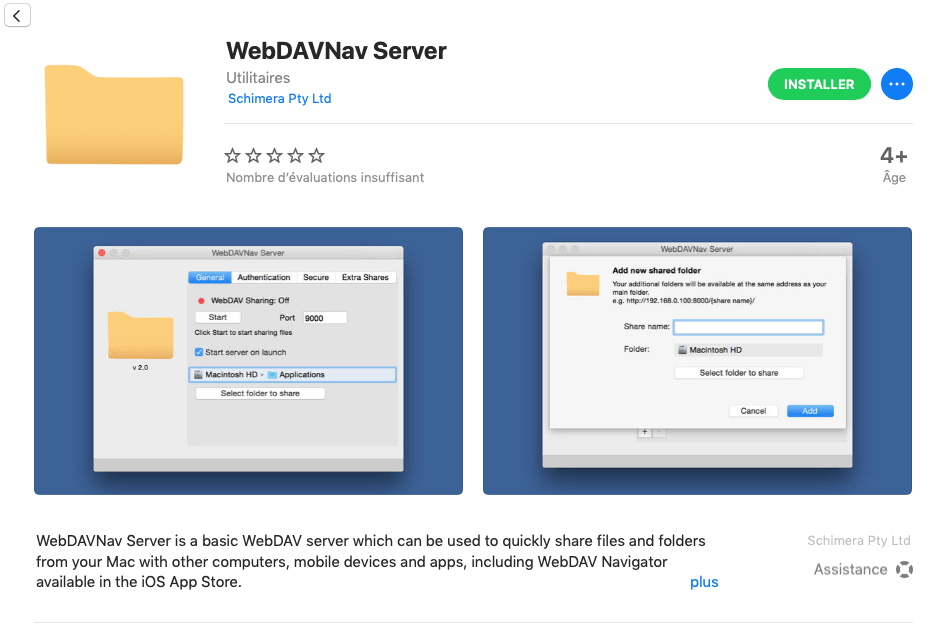 J’ai aussi installer un serveur WebDAV sur le MAC ( gratuit ) :