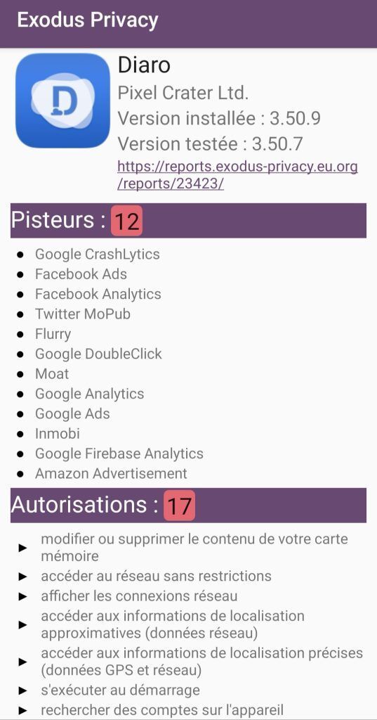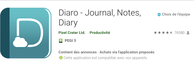 - Android : https://play.google.com/store/apps/details?id=com.pixelcrater.Diaro&hl=fr . (76 580 users )