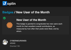 / Joplin : Je suis heureux de recevoir le badge "New User of the Month"