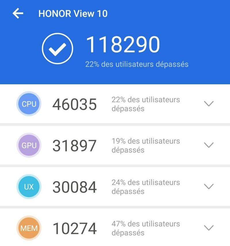 / HONOR : BKL-L09 : Honor View 10 : Benchmark avec AnTuTu v7.2.2