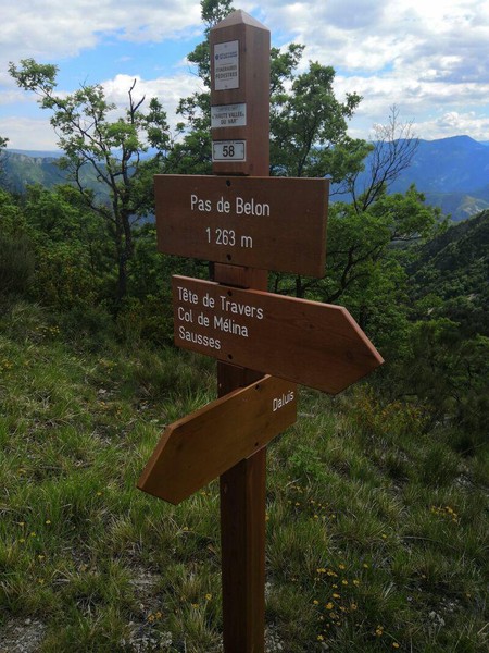 Aie, le retour à été chaotique car on n’a pas pris le bon chemin … qui n’était pas bien balisé. Je conseille vivement de ne pas prendre le chemin de la Crête de Belon. On s’est un peu perdu dans la Crête de Chassagne mais finalement on est retombé sur un ancien chemin balisé qui conduisait dans une propriété privé. Donc mon conseil, après la Tête de Travers faire demi-tour. A noter aussi que le chemin entre le panneau n°58 (Pas de Brelon) et n°59 est très pendu.