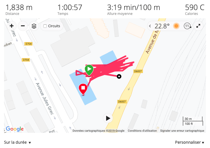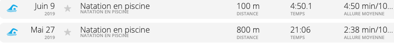 Un exemple de non détection de la piscine de 50m, normalement je suis à 2:35min/100m :