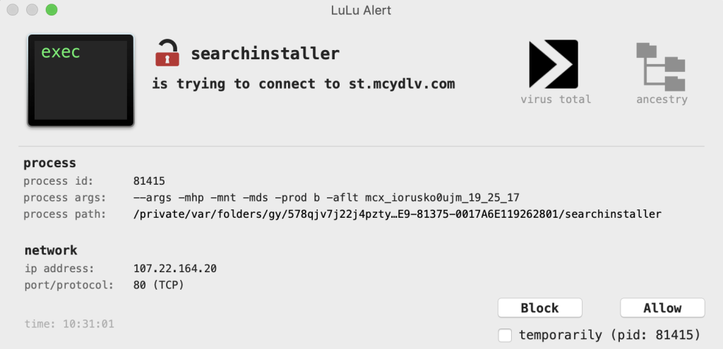 Une fois il va se connecter sur st.mcydlv.com ( Malware ) :